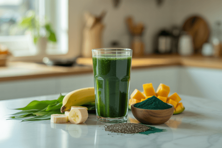 Этот освежающий напиток отлично подходит для утреннего заряда бодрости. Смешайте в чаше измельчителя 200 мл кокосового молока, один спелый банан, 100 г замороженного манго, чайную ложку спирулины и столовую ложку семян чиа. Взбивайте на высокой скорости 40–60 секунд до однородной текстуры. Семена чиа придадут коктейлю приятную густоту и дополнительную порцию омега-3.